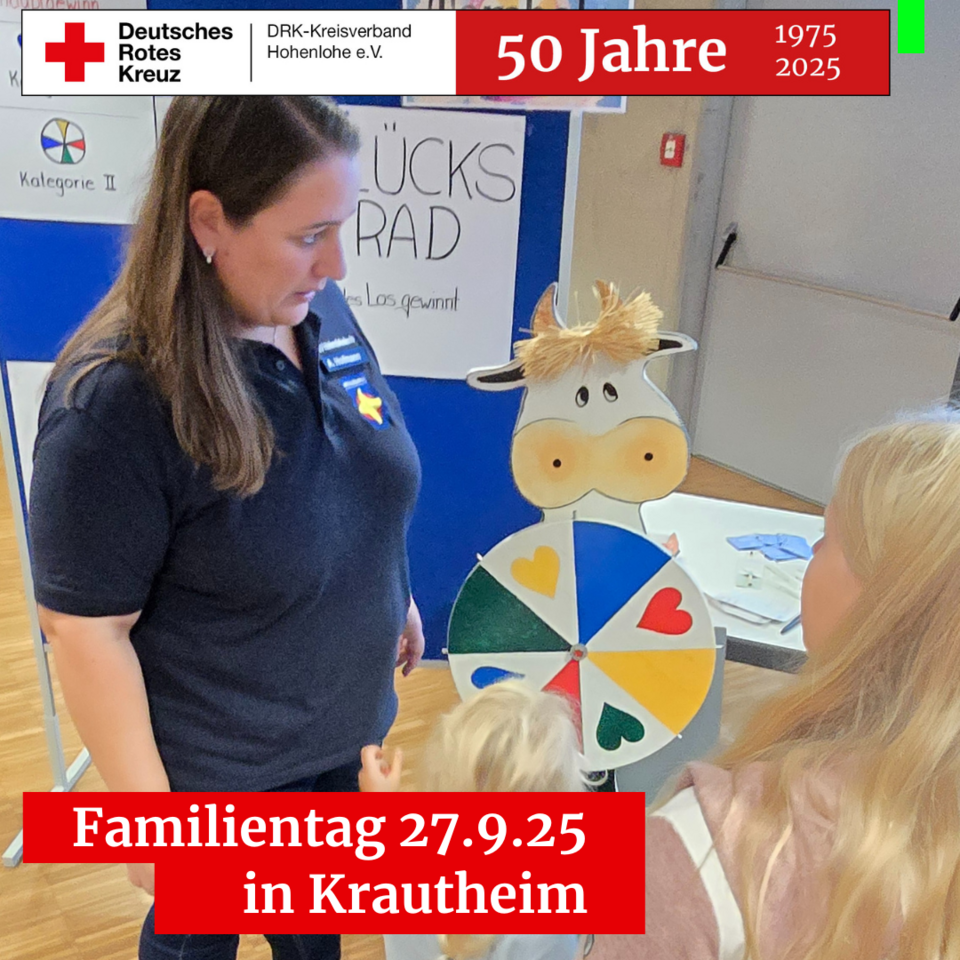 Zu einem bunten Nachmittag plus Party am Abend mit der Band “Jimby Jones” hat der DRK-Kreisverband Hohenlohe am Samstag, 27. September 2025, nach Krautheim eingeladen. Auf dem Programm standen Spiel und Spaß bei Speis und Trank zum 50-jährigen Bestehen des Kreisverbands. Die DRK-Aktiven brachten auch ihre Familien mit. So wurde die Veranstaltung zum großen Treffpunkt.